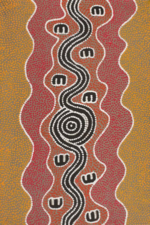 This artwork comes from Warlukurlangu Artists Aboriginal Corporation in Yuendumu, Central Australia. Established in 1985, it is one of the longest running Aboriginal-owned art centres and operates as a 100% Aboriginal-owned, not-for-profit organisation.